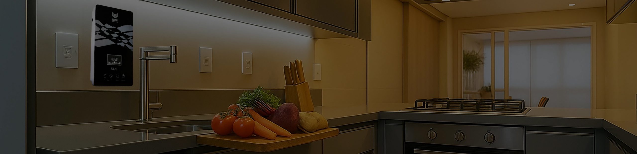 O gerador de ozônio WIER SANIT, é um equipamento compacto, prático e super tecnológico capaz de higienizar frutas, verduras, legumes e utensílios domésticos como talheres e brinquedos de bebê com eficiência muito superior a água corrente ou produtos químicos como cloro.